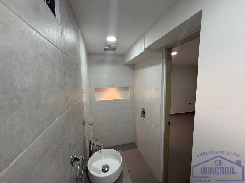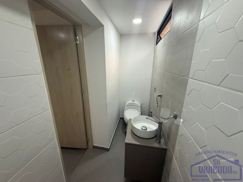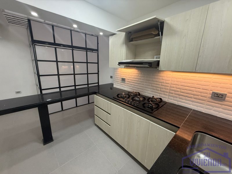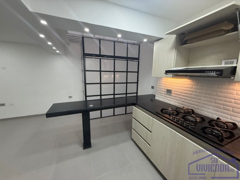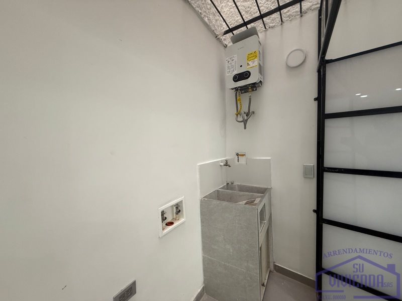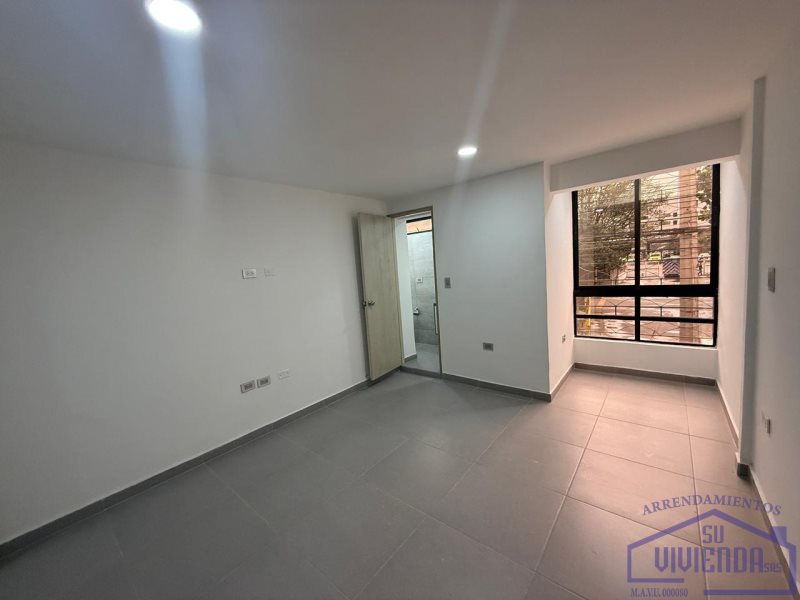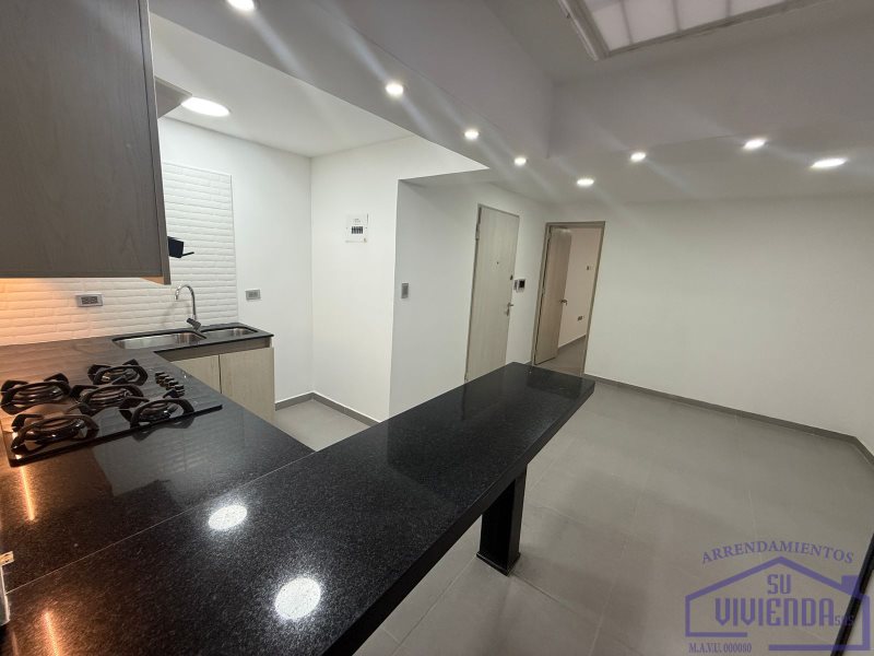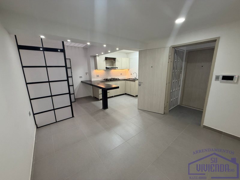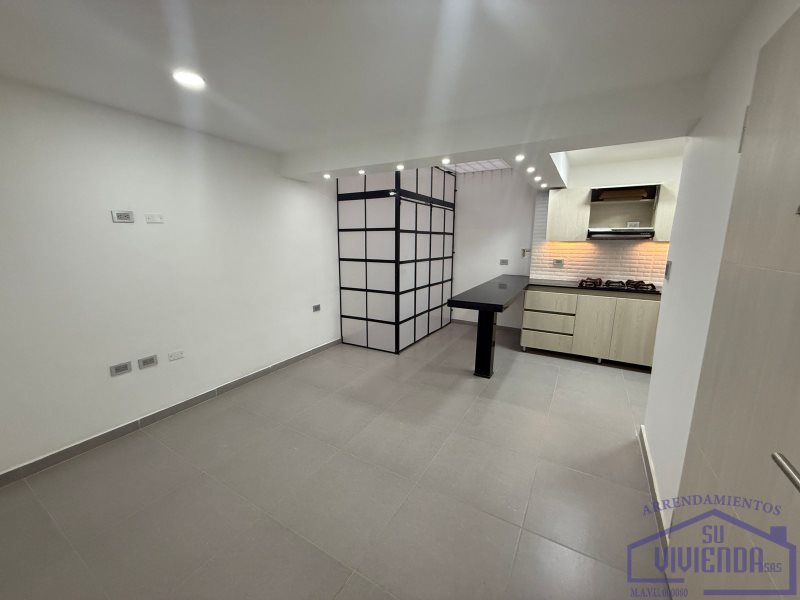Aparta estudio de 43 m2 en segundo piso, alcoba, baño, clóset, cocina integral, barra americana, red de gas, calentador, sala, zona de ropas y piso en cerámica.