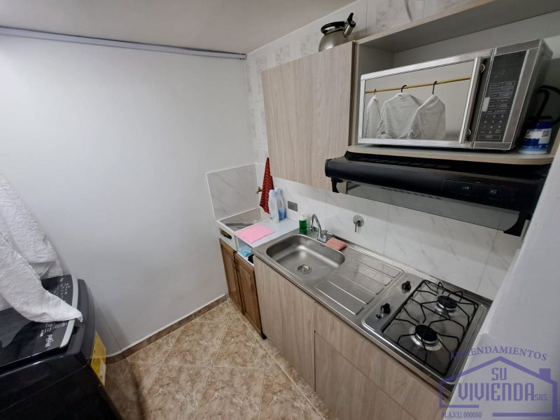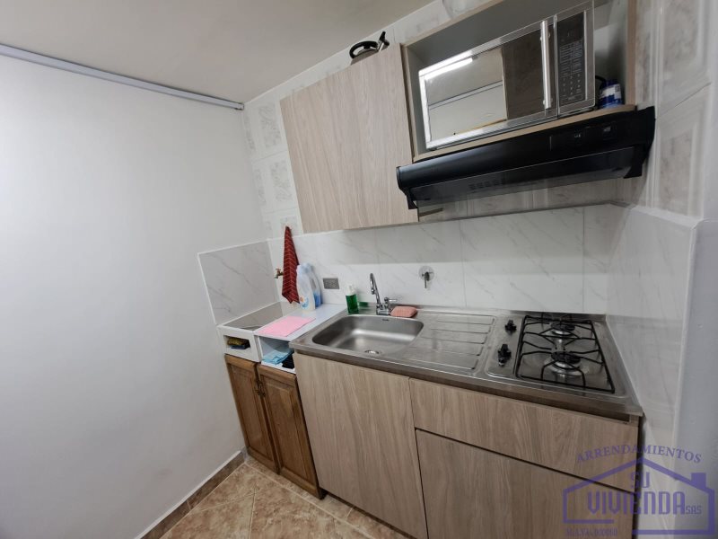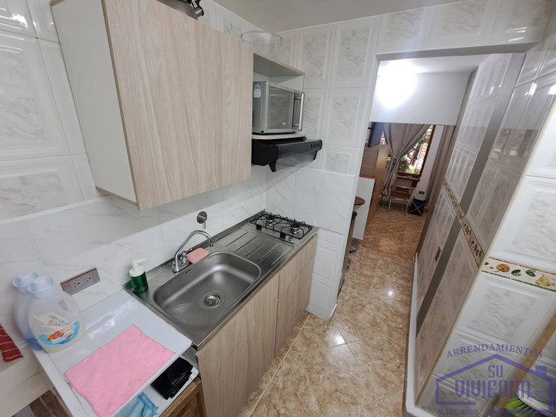Aparta estudio de 28 m2, alcoba, baño, clóset, cocina integral, red de gas, patio, zona de ropas y piso en cerámica.